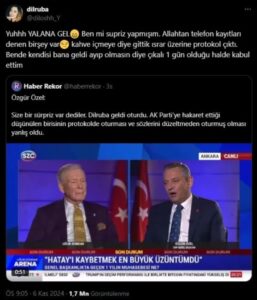 Bu sözlerin ardından KayserilioÄŸlu, sosyal medya hesabından bir paylaşım yaptı. Özgür Özel’in yalan söylediÄŸini ve kendisinin oraya kahve içmeye diye davet edildiÄŸini, ardından da protokole oturtulduÄŸunu iddia etti. Dilruba KayserilioÄŸlu’nun paylaşımı şöyle;